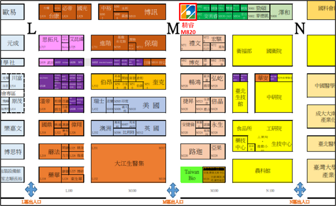 精睿攤位於CRO區,編號M820,由南港展覽館1館4F,M區出入口進入後直走。